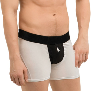 - Выполнен в виде трикотажного мешочка, прикрепленного к эластичному поясу